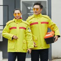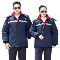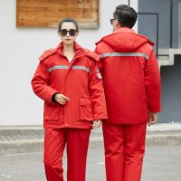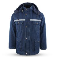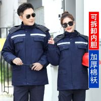 君御 JY-M101秋冬涤棉反光条加厚棉服工作服藏青拼红领 一体不可拆